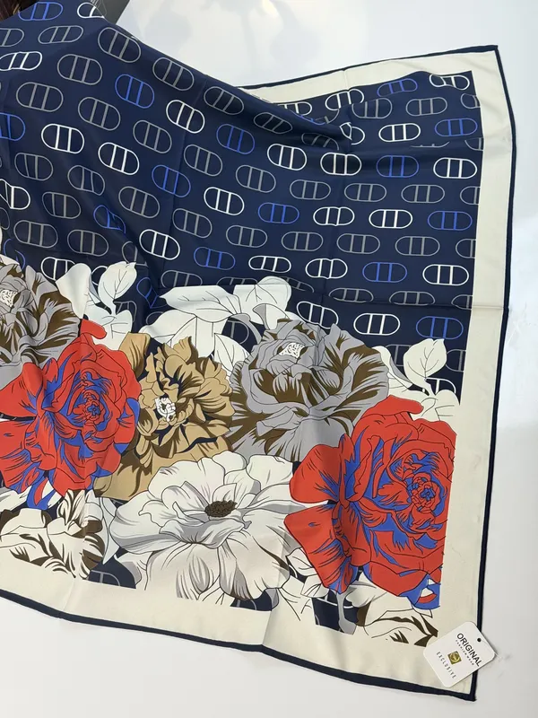 روسری طرح رز سرمه ای قواره 90