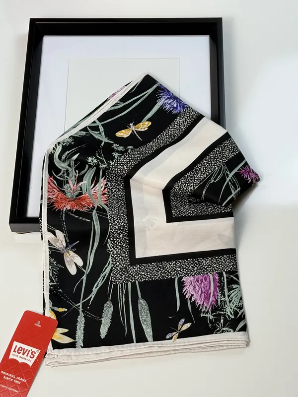 روسری ابریشمی ، بسیار نرم لطیف، رنگ ثابت ، بدون پرز دهی بسیار زیبا و چشم نواز